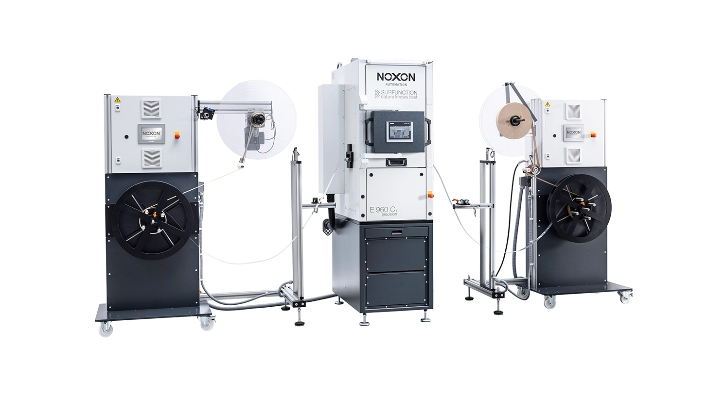 High-Speed Microscale Surface Structuring for Next-Generation Electrical Connectors The E 960 C1 is a production-grade laser system that functionalizes stamped and unstamped strip material - single or double-sided - at industrial speed. Precise. Reproducible. Inline-ready. Born from the partnership between NOXON Automation and SurFunction - powered by ELIPSYS®.
